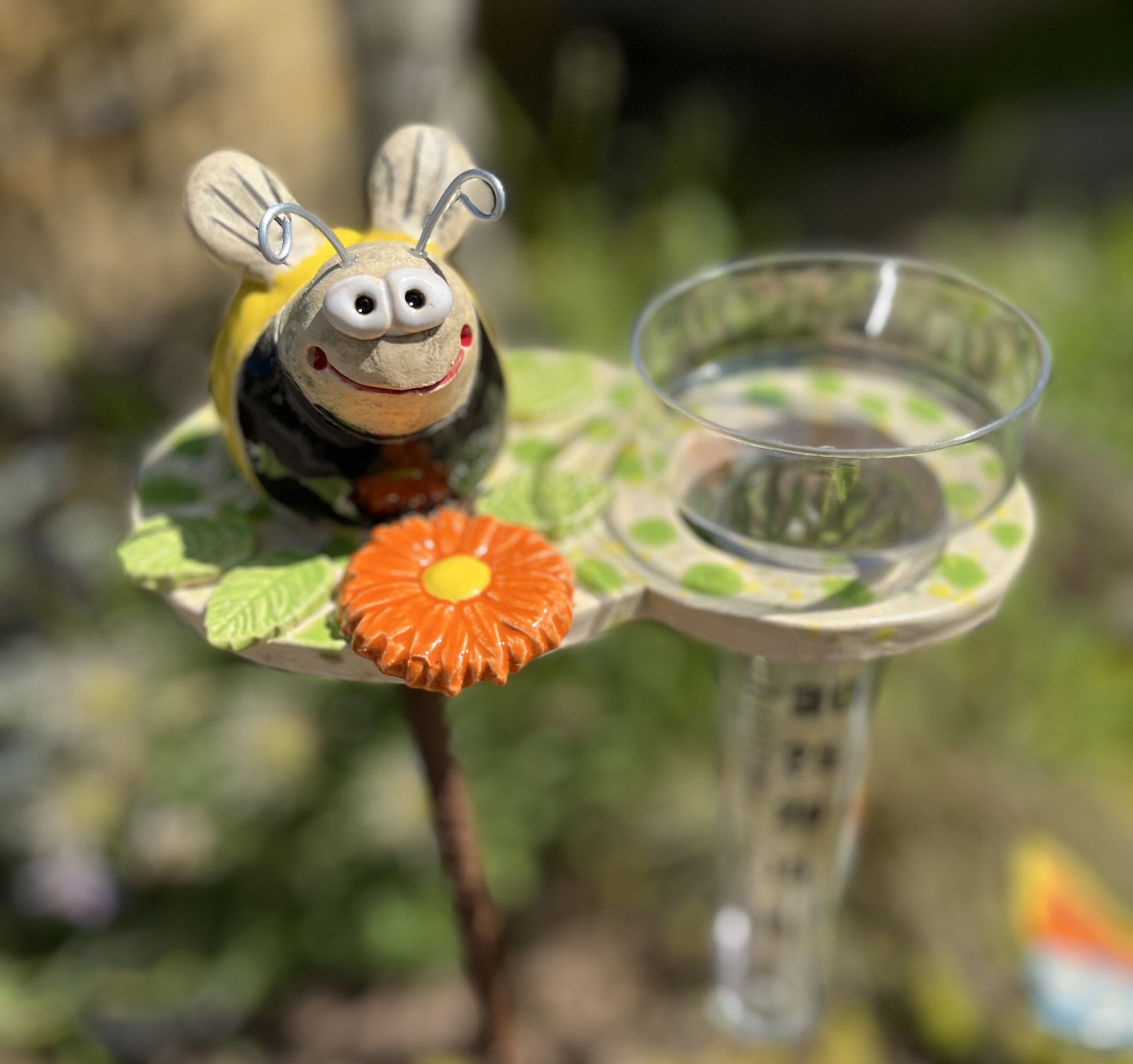 So entstehen regelmäßig neue Figuren, Vogeltränken, Regenmesser usw., die so manchem ein Schmunzeln entlocken.